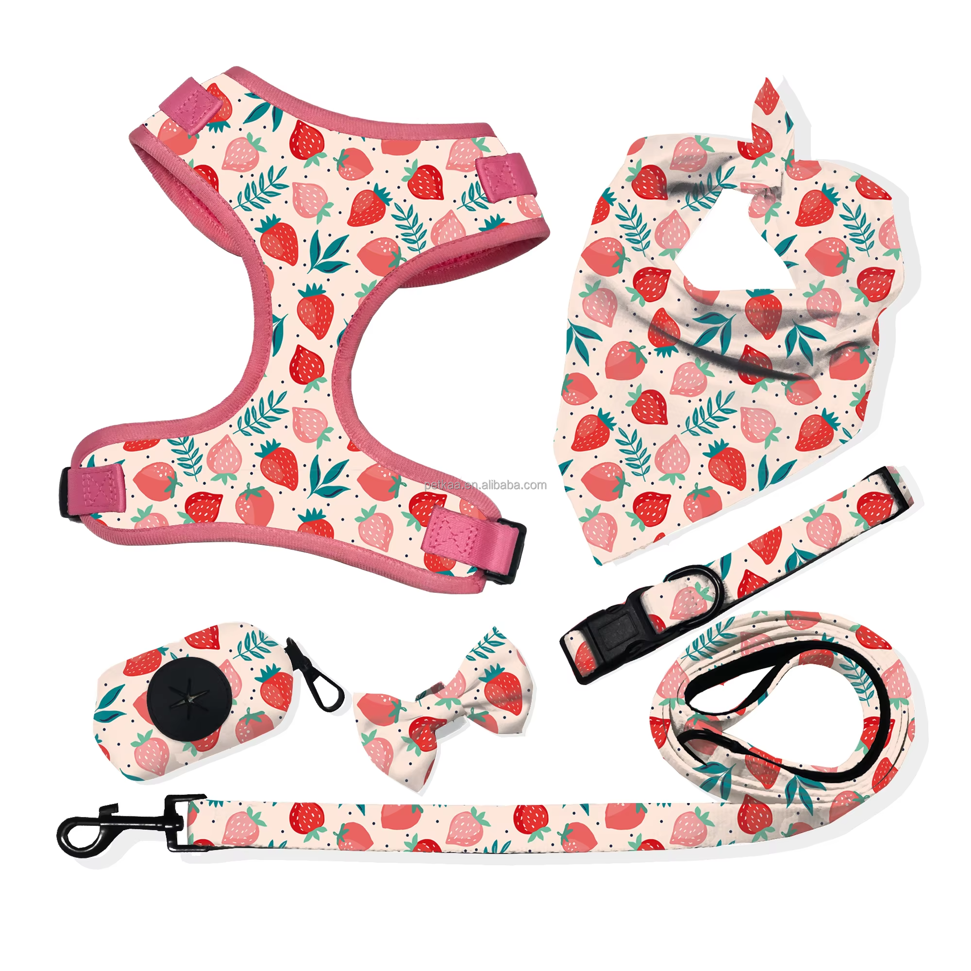יוקרה אישית גור רצועה leash צווארון תות מתכווננת מחמד תיק פופ בנדנה הפיכות ניוון ניאופרן כלבים